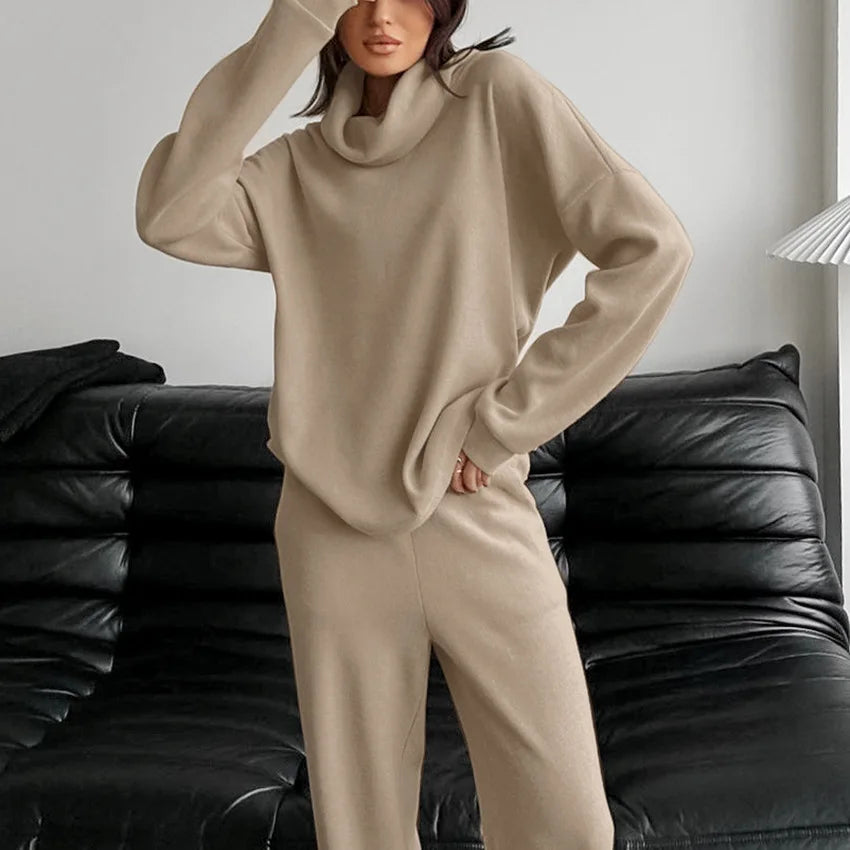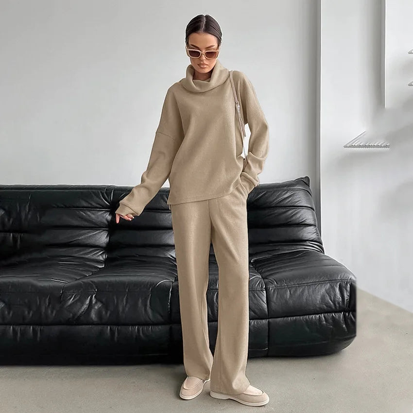El Conjunto Marjal es la definición de elegancia relajada. Diseñado para mujeres modernas que buscan un look cómodo sin renunciar al estilo, este set incluye un suéter de manga larga con cuello alto suave y un pantalón recto de tiro medio, ambos confeccionados en un tejido ligero, cálido y agradable al tacto.